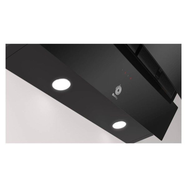 Descubre la campana extractora Balay 3BC585GN, un diseño inclinado en cristal negro que maximiza el espacio de cocción, con una capacidad de 629 m³/h para un ambiente libre de humos y olores. Iluminación LED para una visibilidad óptima y filtros de aluminio multicapa, combinando elegancia, funcionalidad y facilidad de mantenimiento en tu cocina.