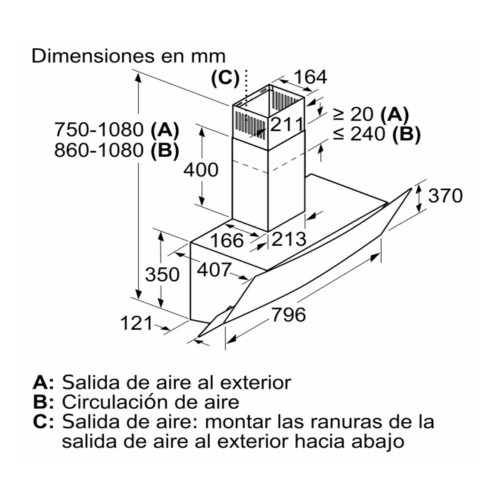 Cuenta con una disposición inclinada, que ofrece una zona de cocción más cómoda. No más golpes con la cabeza o incomodidad al cocinar. Con esta campana extractora, disfrutarás de una experiencia de cocción más agradable, sin renunciar al estilo y la eficiencia.