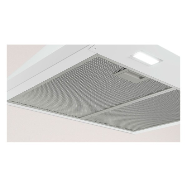 Con un cuerpo de acero inoxidable y un acabado en color blanco, esta campana extractora tiene un aspecto elegante y sofisticado. Además, sus filtros de aluminio son lavables, lo que facilita su mantenimiento.