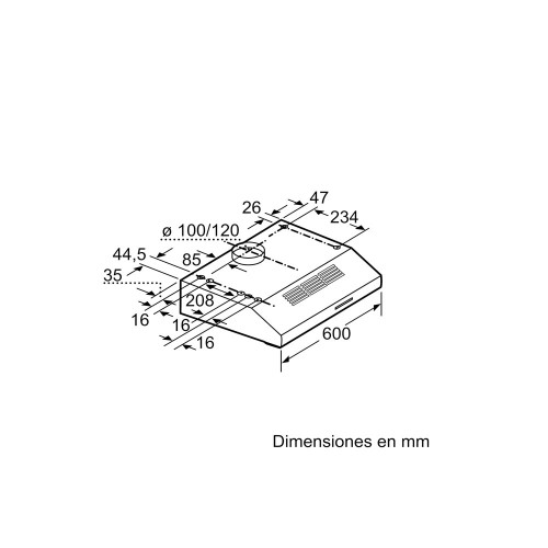 La campana extractora está hecha de un duradero cuerpo de acero inoxidable y cuenta con filtros de aluminio lavable multicapa. Con un ancho de 60 cm, una profundidad de 48,2 cm y una altura de 15 cm, se integra fácilmente en cualquier espacio de cocina.