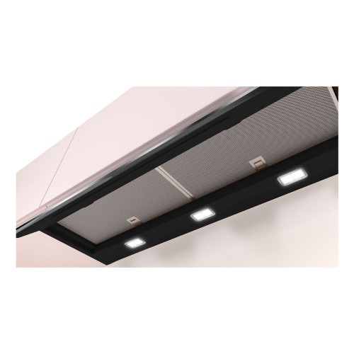 La campana extractora Balay 3BD997GN, integrable en tu mueble de cocina, aporta elegancia y sofisticación gracias a su visera protectora de muebles en cristal negro.