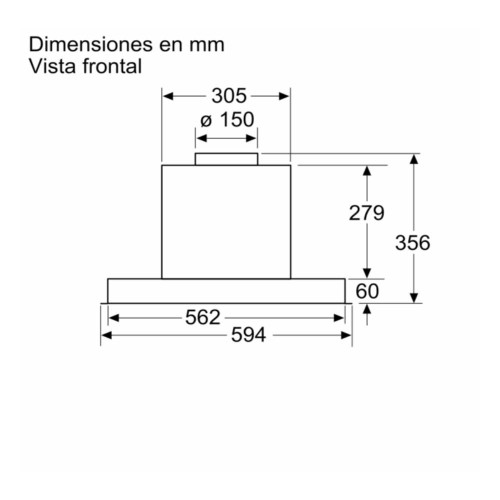 El cuerpo de la campana y el conducto decorativo son de acabado en acero inoxidable con un ancho de 59,4 cm, un alto de 35,6 cm, incluyendo el tubo extractor y una profundidad de 35 cm, es una opción que se ajustará perfectamente a tu cocina.