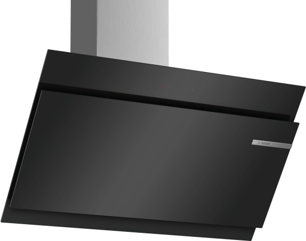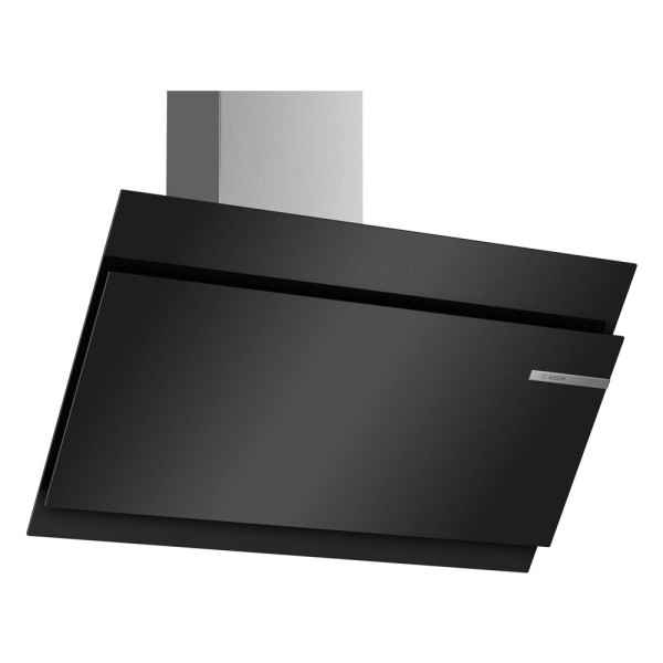 La campana extractora Bosch DWK97JM60 combina elegancia y funcionalidad en su diseño decorativo. Su acabado en cristal negro y su instalación vertical inclinada en la pared agregan un toque moderno y sofisticado a tu cocina, creando un espacio visualmente atractivo.