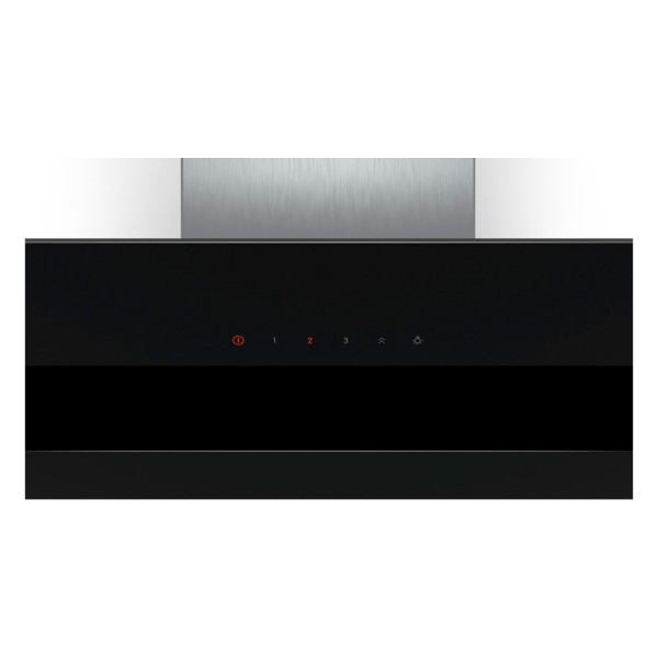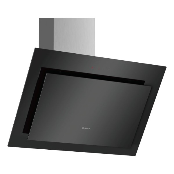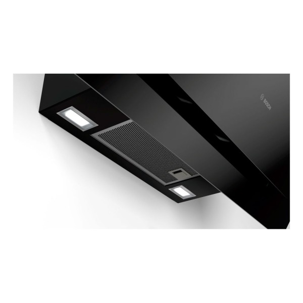 La campana extractora decorativa Bosch DWK87CM60 presenta un acabado en cristal negro, perfecto para complementar cualquier estilo de cocina. Su instalación en la pared en forma inclinada brinda un aspecto moderno y sofisticado.