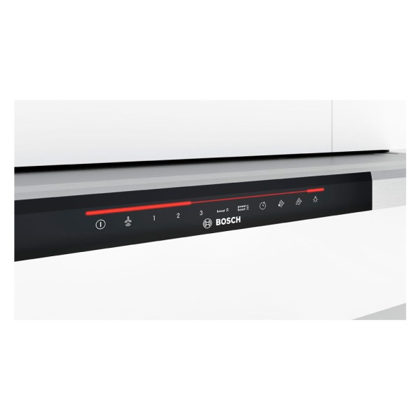 La campana extractora telescópica Bosch DFS097K51 cuenta con un control electrónico TouchControl que permite ajustar fácil y rápidamente los niveles de extracción.