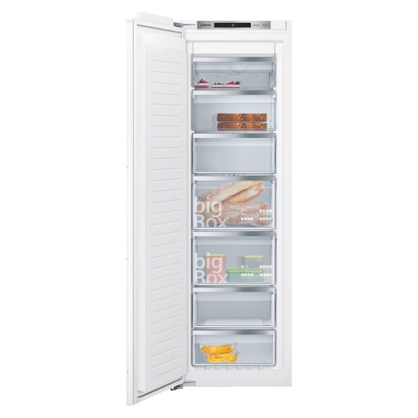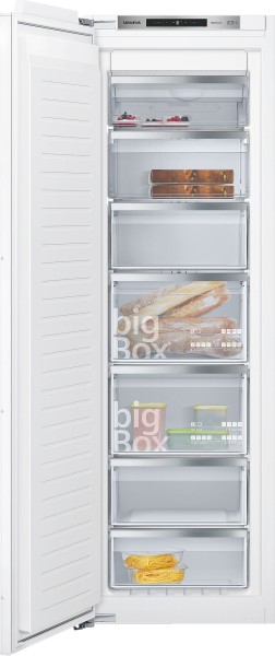 Para alimentos especialmente grandes como algunas piezas de carne, cajas de pizzas apiladas o recipientes altos se necesita más espacio. El cajón bigBox proporciona espacio suficiente para colocar y apilar todo lo que necesites. Y cuando se requiera aún más espacio, los cajones y las bandejas pueden retirarse fácilmente del congelador para tener todo el espacio a tu disposición.