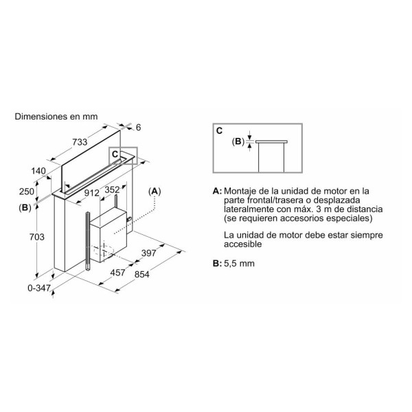 El nuevo extractor de encimera de cristal ofrece una visión sin límites del espacio. La tecnología Guided Air crea una cortina de aire tras el cristal que asegura una extracción pootente y silenciosa con resultados excelentes desde cualquier zona de cocción.