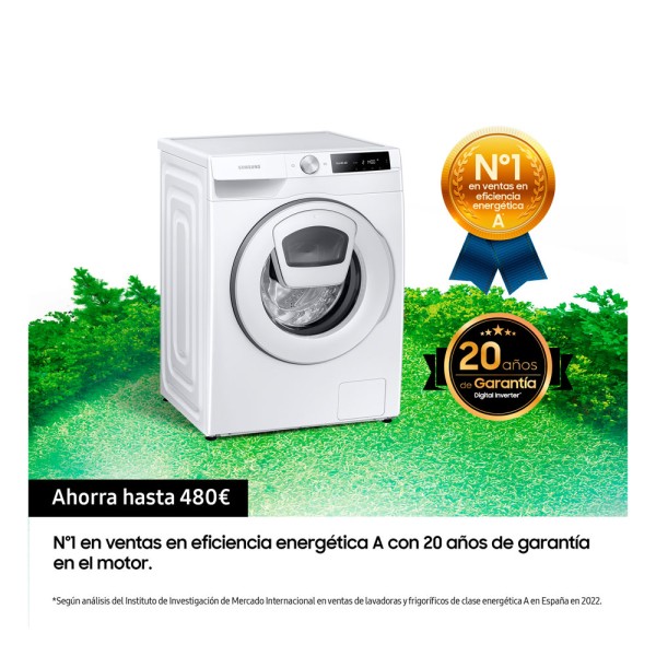 El Motor Digital Inverter de las lavadoras Samsung funciona con imanes, sin usar escobillas, lo que supone menos fricción, ahorro de consumo energético, mayor eficiencia y menos ruido. Esto se traduce en un menor desgaste y permite una mayor vida útil, con 10 años de garantía.