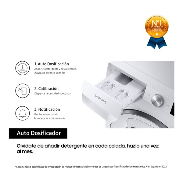 Olvídate de añadir detergente en cada colada o de preocuparte si has añadido suficiente. Con el Auto dosificador tendrás detergente para un mes de lavados.