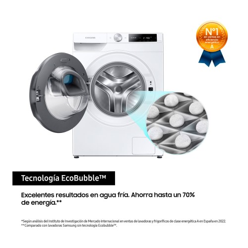 Excelentes resultados en agua fría. El agua con detergente se mezcla con aire antes de entrar en el tambor, generando una capa de burbujas que penetra más rápido en las prendas y las protege de la fricción.