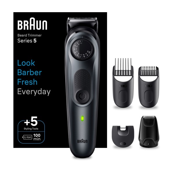 Look profesional cada día, máxima precisión y control al 100 % con la recortadora de barba Series 5 de Braun