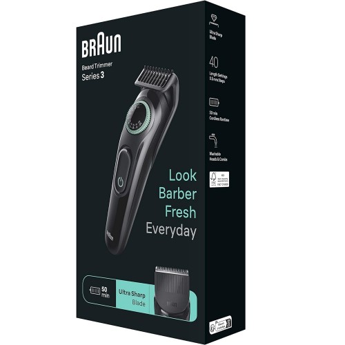 Look profesional cada día, máxima precisión y control al 100 % con la recortadora de barba Series 3 de Braun