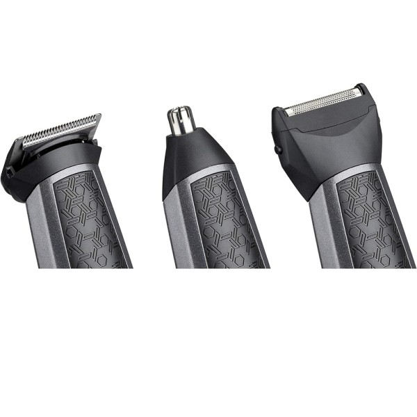 Nuestro Multigroom kit de maquinilla Carbon Titanium 11 en 1 con tecnología de cuchillas de titanio de carbono para conseguir un afeitado sin esfuerzo en cualquier zona. Cuenta con una maquinilla corporal y facial para dar forma y peinar tu barba, barba incipiente "de tres días", patillas o vello corporal. Además, incluye un cabezal de lámina afeitadora para conseguir unos bordes definidos y uniformes, y un cabezal para recortar el vello de las orejas y la nariz con el que conseguirás un acabado impecable.